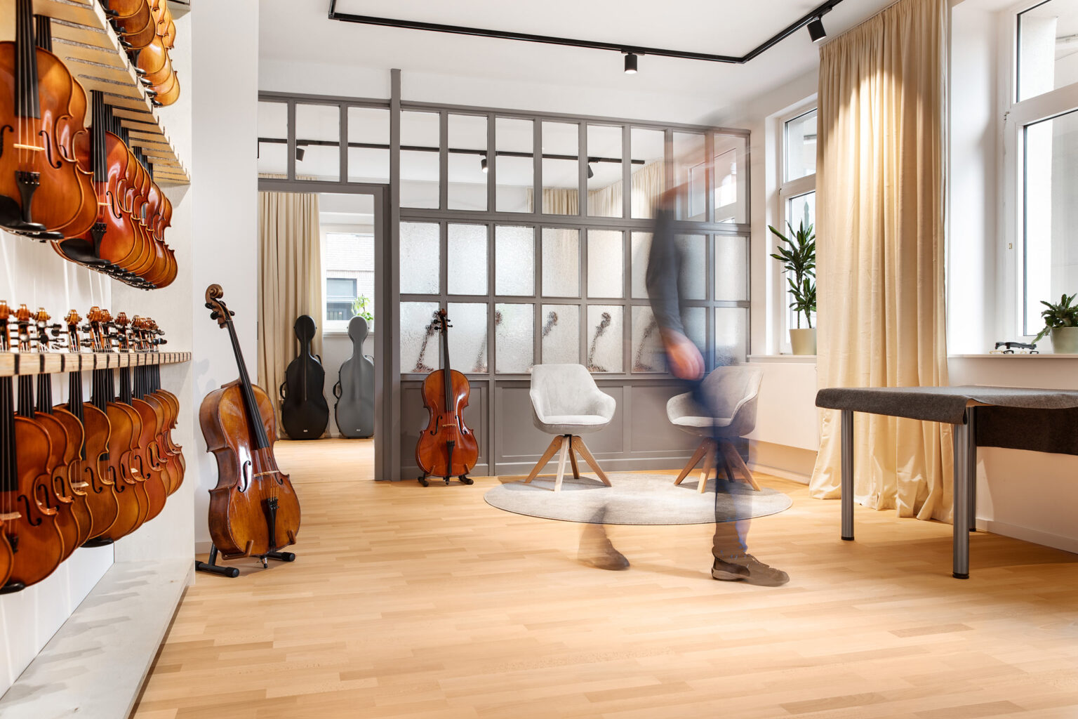 In unserem Violineo-Atelier stehen klangvolle Geigen, Bratschen und Celli vom Einsteiger- bis